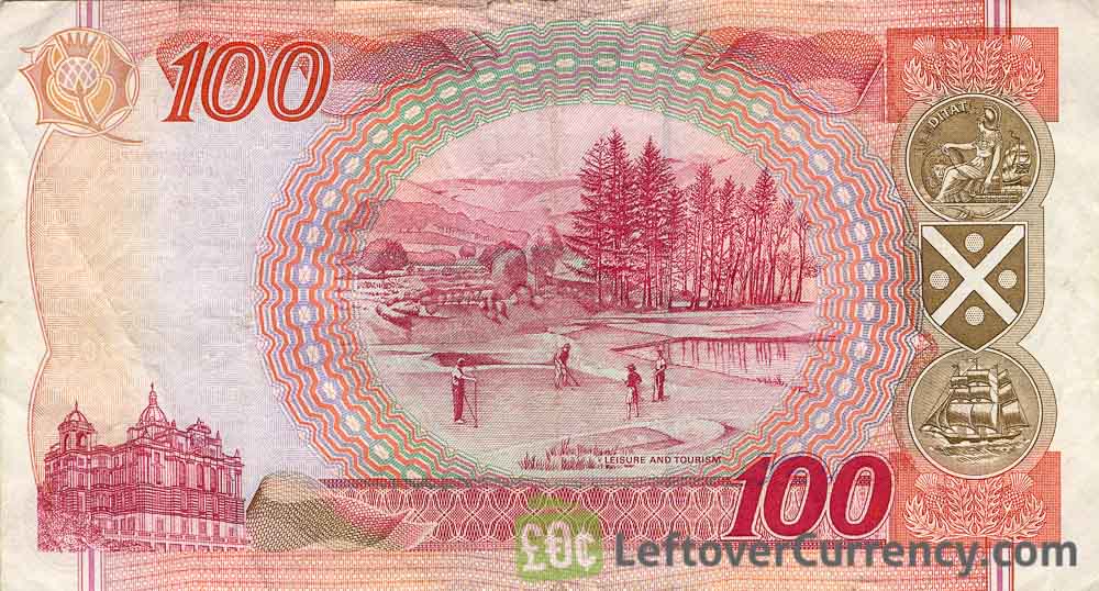 - Text: 100, Bank of Scotland, One Hundred Pounds Sterling