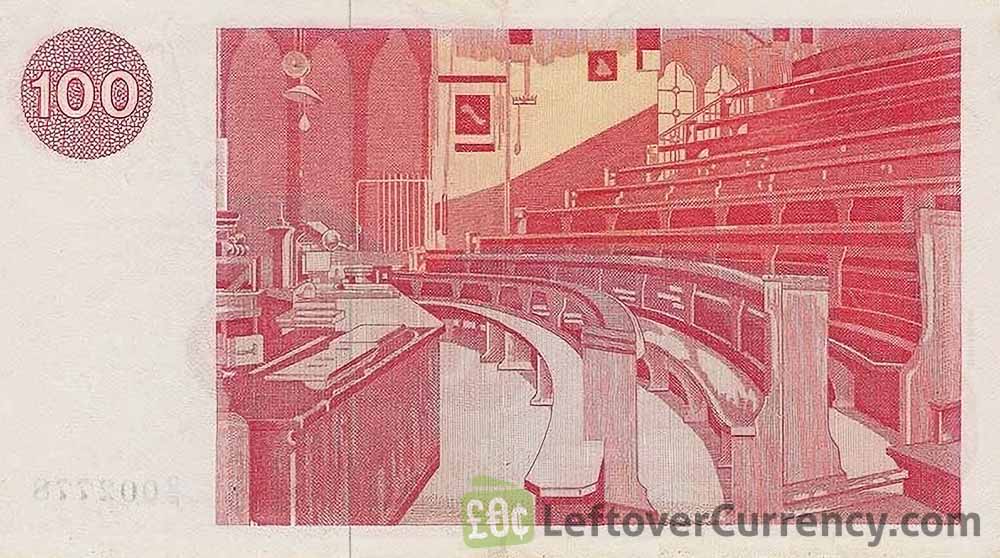 The Clydesdale Bank issued Scottish Pound banknotes in 7 different denominations, including this Clydesdale Bank 100 Pounds banknote (1985-1991 series). They are part of the withdrawn Clydesdale Bank banknotes series. The Clydesdale Bank started issuing these 100 Scottish Pound banknotes in 1985. They were withdrawn from circulation in 1991.