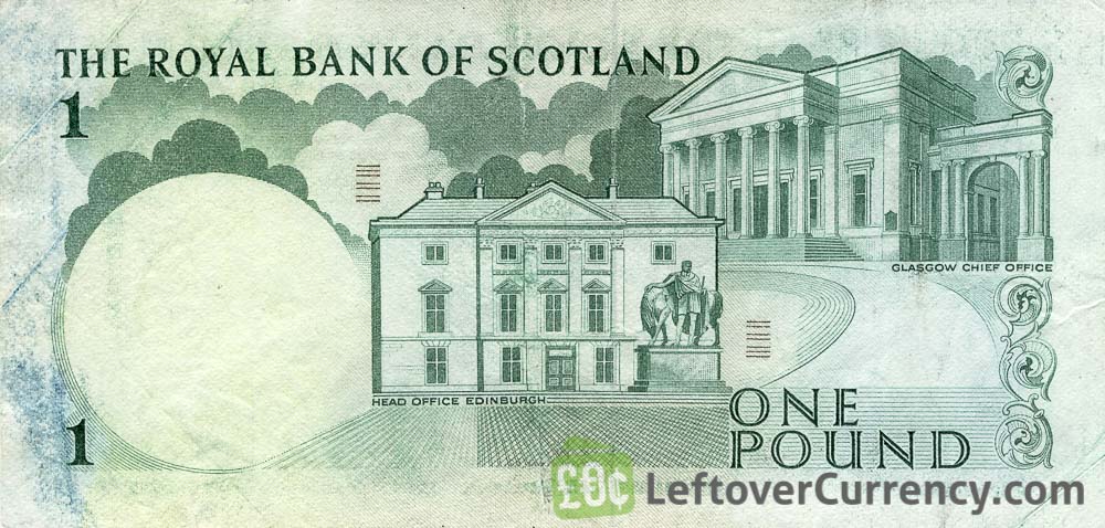 The Royal Bank of Scotland issued Scottish Pound banknotes in 6 different denominations, including this The Royal Bank of Scotland 1 Pound banknote (1967 series). They are part of the withdrawn Royal Bank of Scotland banknotes series. The Royal Bank of Scotland started issuing these 1 Scottish Pound banknotes in 1967. They were withdrawn from circulation in 1969.