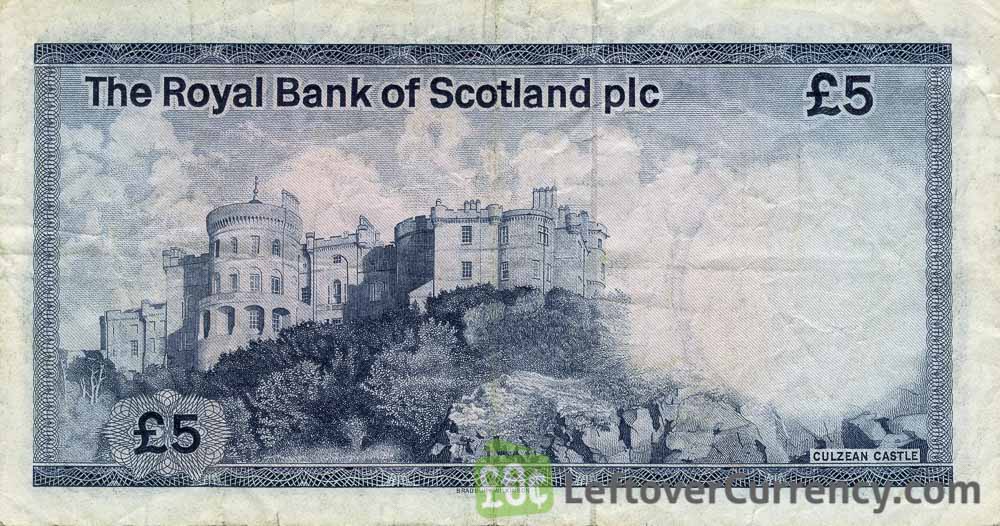 Repeat these steps for any other notes and coins you want to exchange. Complete checkout and get paid within 5 days of receiving your currencies. To exchange your The Royal Bank of Scotland plc 5 Pounds banknote (1982-1986 series) for cash: add it to your wallet now!