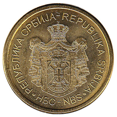 The National Bank of Serbia issued Serbian Dinar coins in 6 different denominations, including this Serbia 1 Dinar coin. They are part of the Serbian Dinar coins series. The National Bank of Serbia started issuing these 1 Serbian Dinar coins in 2003. They are currently still in circulation.