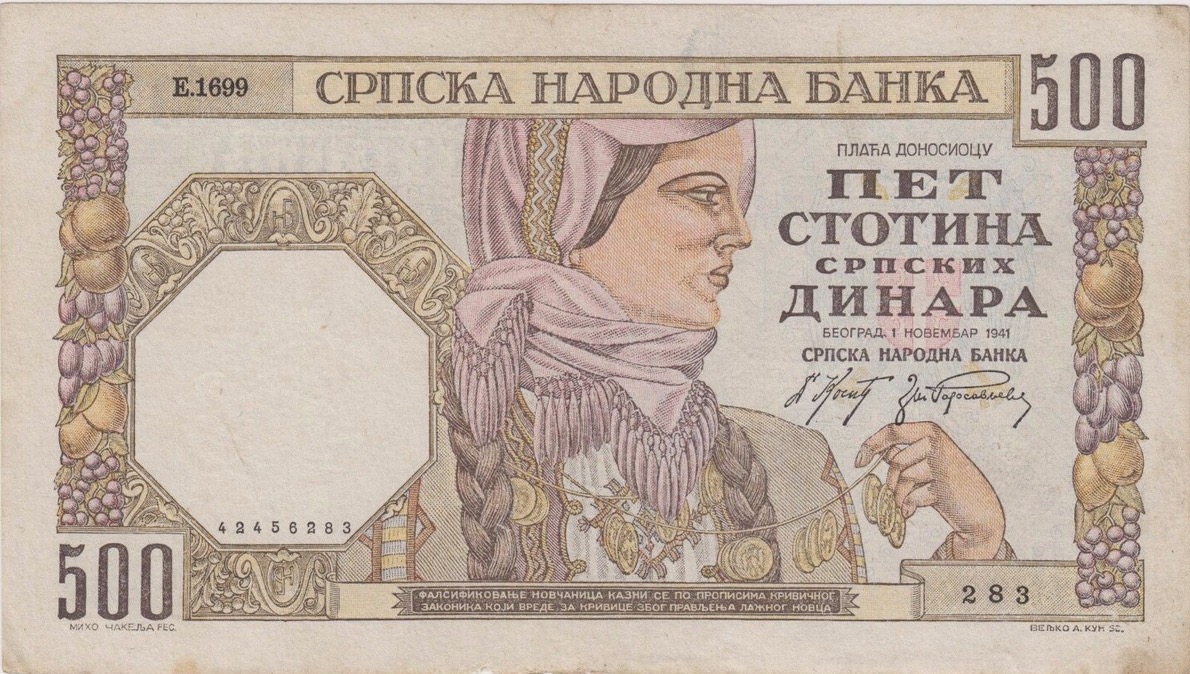 500 Serbian Dinara banknote (1942 German Occupation)