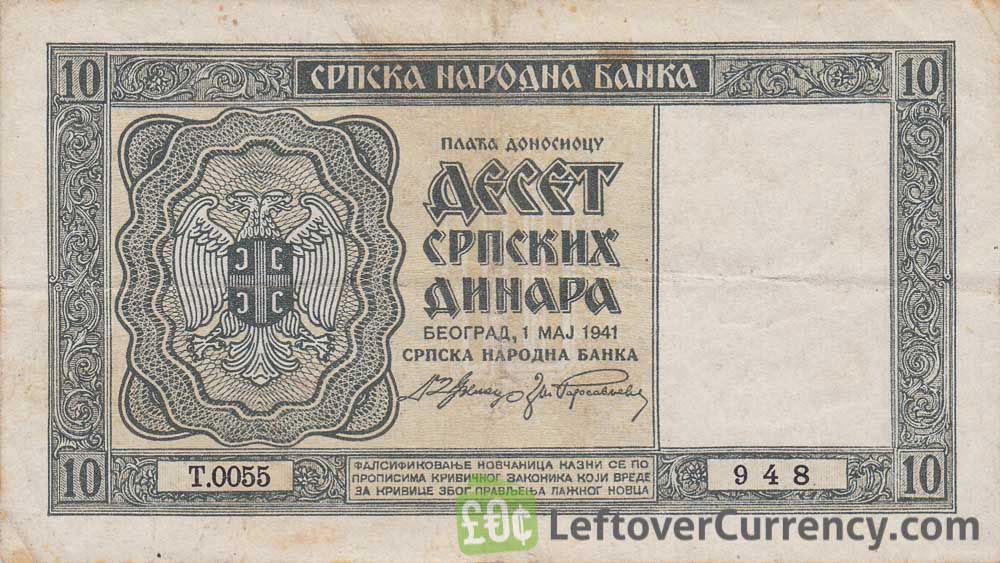 Repeat these steps for any other notes and coins you want to exchange. Complete checkout and get paid within 5 days of receiving your currencies. To exchange your 10 Serbian Dinara banknote (1941 German Occupation) for cash: add it to your wallet now!
