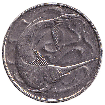 The cupronickel coin of 20 Singapore cents from the 1st series has a swordfish on the reverse side. The coin weighs 5.66 grams and has a diameter of 2.36 centimetres.
