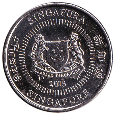 The Monetary Authority of Singapore issued Singapore Dollar coins in 8 different denominations, including this 50 Cents coin Singapore (Third series). They are part of the Singapore Dollar coins series. The Monetary Authority of Singapore started issuing these 0.5 Singapore Dollar coins in 2013. They are currently still in circulation.