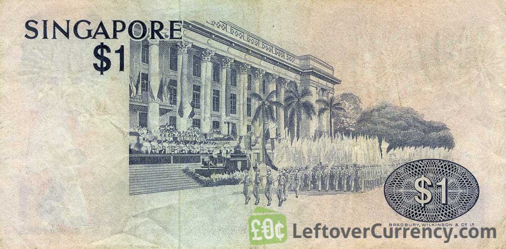 The banknote of one dollar is 125mm wide by 63mm high. On the $1 dollar paper note a caption reads ‘Singapore’. The bird on the front of the 1 SGD note is a black-naped tern. On the backside of the note is a depiction of the National Day parade in Singapore.
