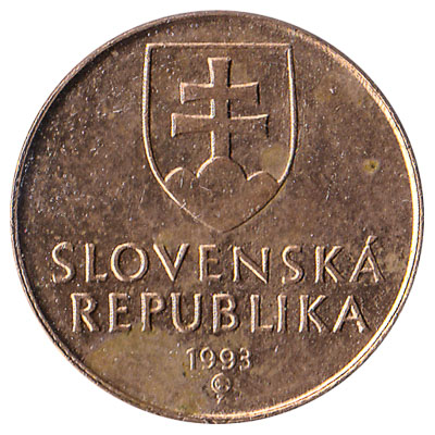 The National Bank of Slovakia issued Slovak Koruna coins in 6 different denominations, including this 1 Slovak Korun coin. They are part of the Slovak Koruna coins series. The National Bank of Slovakia started issuing these 1 Slovak Koruna coins in 1993. They were withdrawn from circulation in 2009.