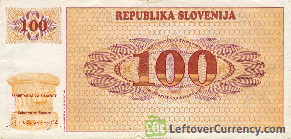 - Text: 100, Republika Slovenija, Sto Tolar