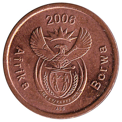 The South African Reserve Bank issued South African Rand coins in 9 different denominations, including this 5 cents coin South Africa. They are part of the South African Rand coins series. The South African Reserve Bank started issuing these 0.05 South African Rand coins in 1989. They were withdrawn from circulation in 2006.