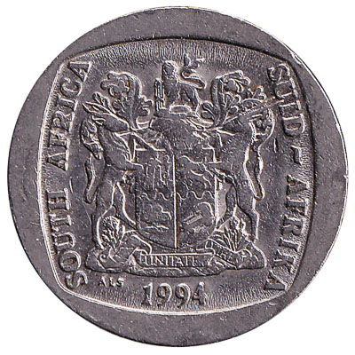 The South African Reserve Bank issued South African Rand coins in 9 different denominations, including this 5 South African rand coin. They are part of the South African Rand coins series. The South African Reserve Bank started issuing these 5 South African Rand coins in 1989. They are currently still in circulation.