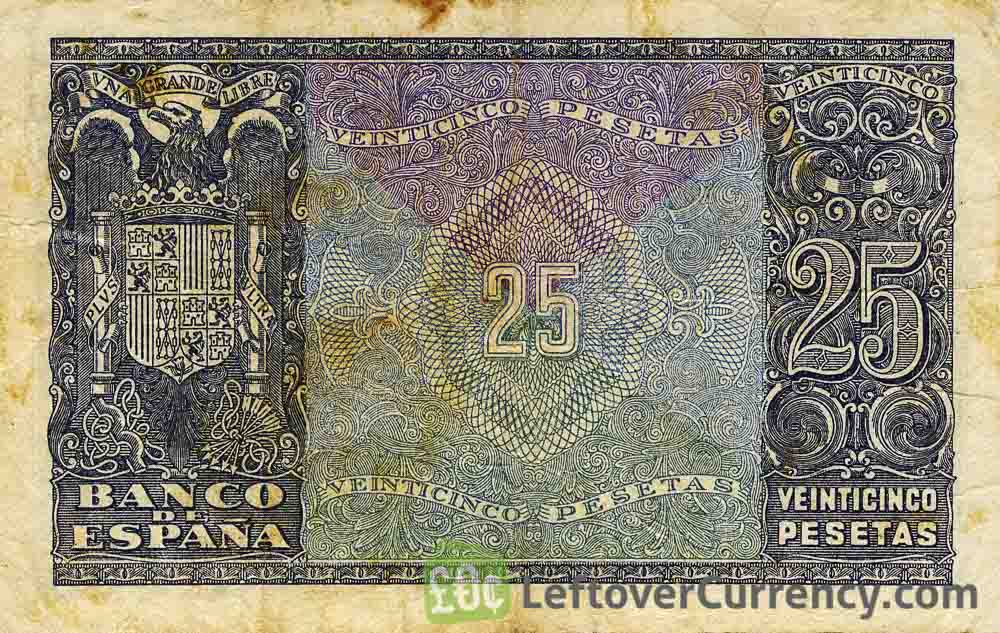 - Text: 25, El Banco De Espana, Pagara Al Portador, Veinticinco Pesetas