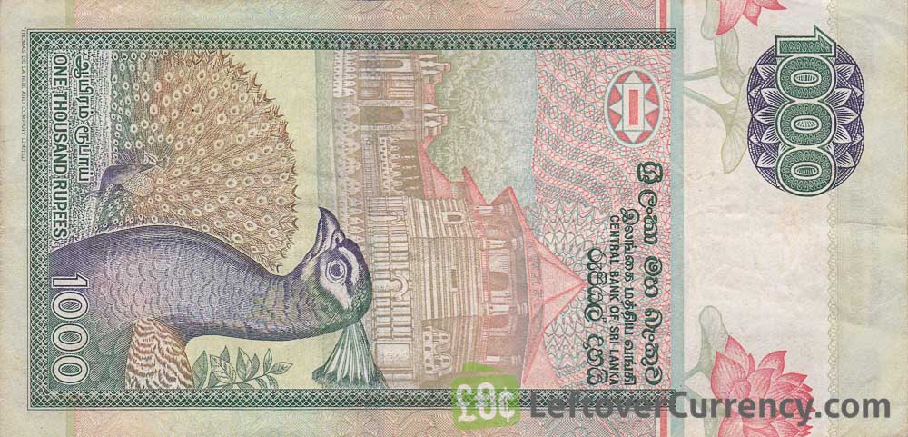 Repeat these steps for any other notes and coins you want to exchange. Complete checkout and get paid within 5 days of receiving your currencies. To exchange your 1000 Sri Lankan rupees banknote (Elephants) for cash: add it to your wallet now!
