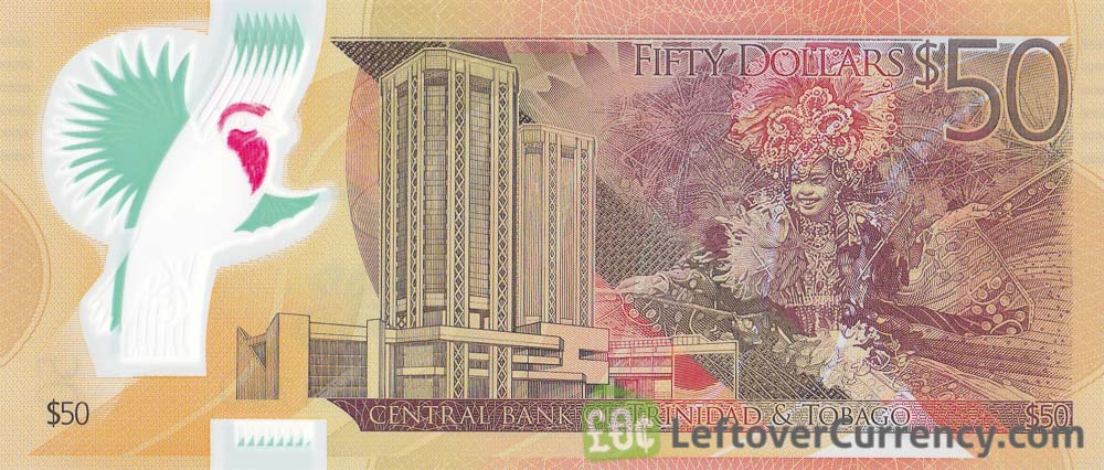 - Text: 1964-2014, 50, Celebrating Fifty Years of the Central Bank of Trinidad & Tobago Series 2014, Fifty Dollars, Issued in accordance with the Central Bank Act Chap. 79:02., Together we aspire Together we achieve