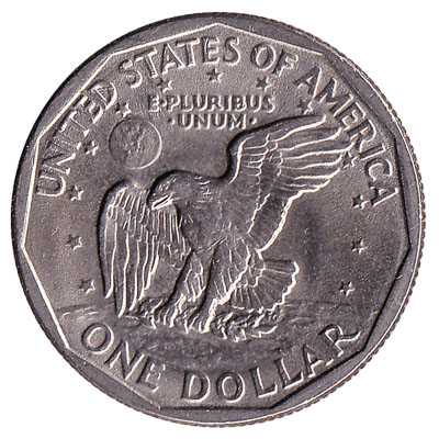 The so-called ‘Anthony Dollar’ features a portrait of the American women’s suffrage activist Susan B. Anthony on the obverse side. The reverse side of the $1 Susan B. Anthony coin shows an eagle with a laurel branch in its talons, flying over the moon. Visible in the background is planet Earth seen from the moon.