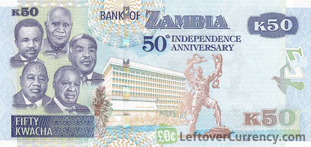 Repeat these steps for any other notes and coins you want to exchange. Complete checkout and get paid within 5 days of receiving your currencies. To exchange your 50 Zambian Kwacha Commemorative banknote (2014) for cash: add it to your wallet now!