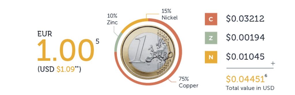 What is the metal value of coins compared to their face value? Does it pay to melt coins? Here’s a handy infographic about the metal value of 10 popular coins from around the world.